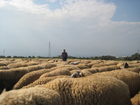 The milk Ripollesas give is much richer than that of other breeds at upwards of 8% milk fat. But hardly anybody raises them because they produce damn little of it: each ewe gives only about 30 liters per year. Meanwhile, Manel tells me, farmers here have gotten used to imported breeds that produce up to 600 liters a year. "You can see why my father, a sixth generation shepherd, who grew up with that level of production, thought ours was a terrible idea." A smile takes over Manel's face as he looks out over the pasture. "That's him out there with the sheep. He works as our shepherd now."